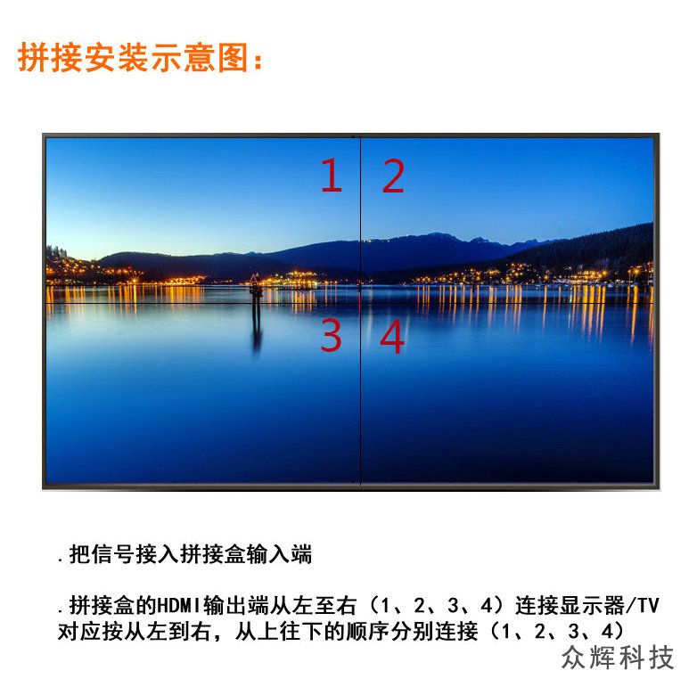 - 支持多路不同的視頻源,也可以U盤播放,無需外接矩陣分配器等,即可實現(xiàn)單臺2*2拼接,或者多臺級聯(lián)使用。