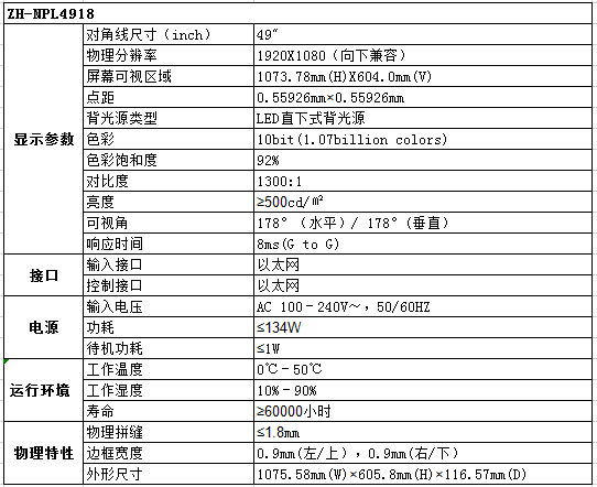 ZH-NPL4918 LG49寸1.8mm拼縫